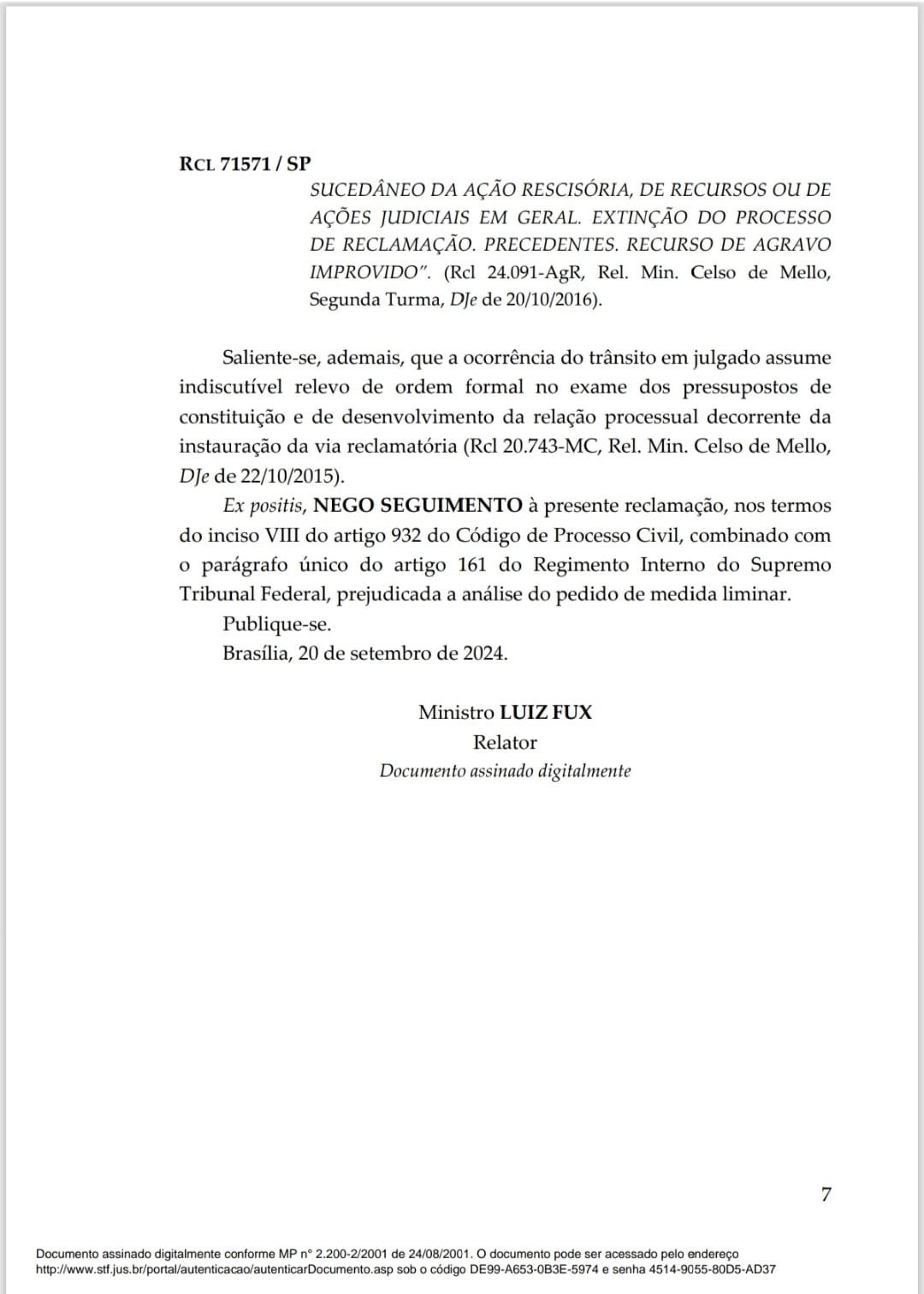 Publicada em 23 de setembro de 2024 a decisão de manter a suspensão dos direitos políticos de Forssell que foi recorrido pelo mesmo após a sentença do juiz eleitorial Paulo Alexandre Rodrigues Coutinho no último dia 11 de setembro 2024.